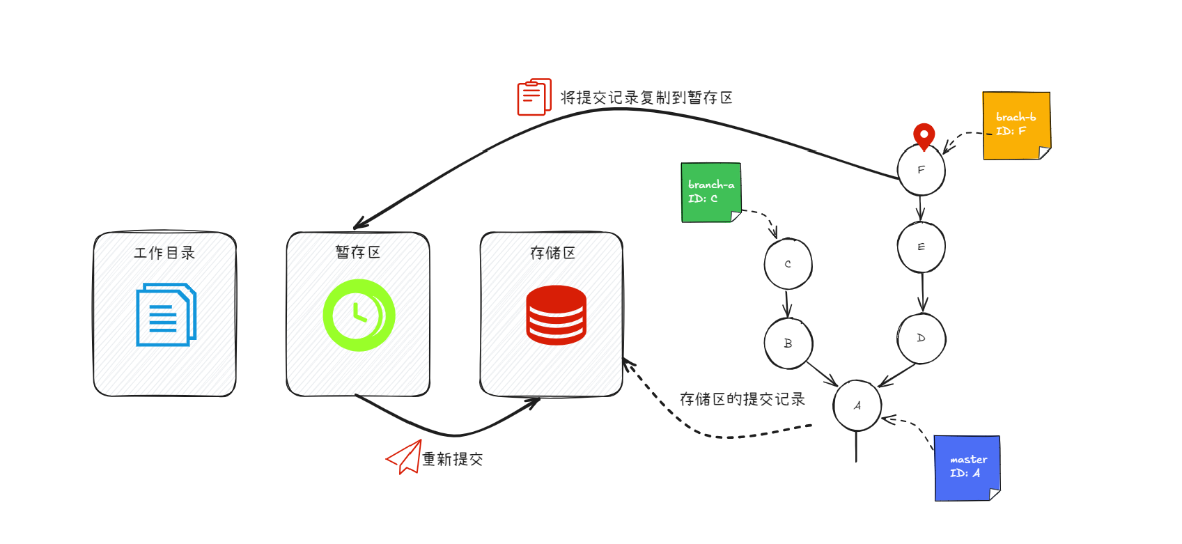 git reset --soft <commit-id> # “软”撤销,只影响存储区