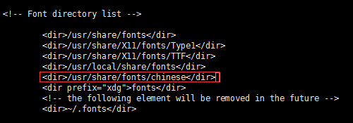在字体文件夹/usr/share/fonts/下创建chinese文件夹,将字体复制到chinese文件夹下,并修改权限755