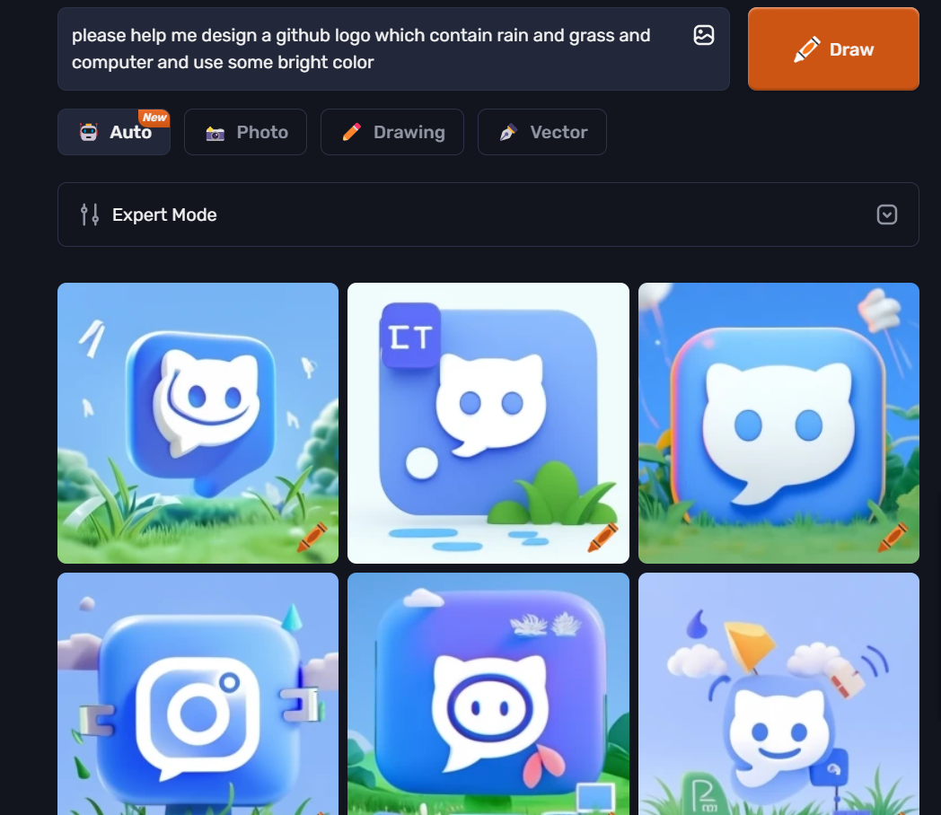 最开始我向它描述了想生成Github的Logo,结果全部是Github的猫猫标志