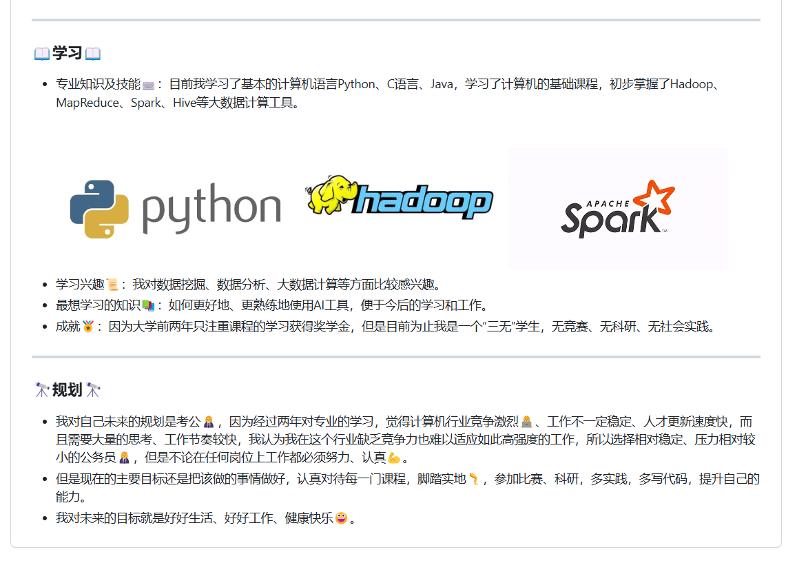 - 最期待的是学会使用AI帮助写代码和解决问题。
