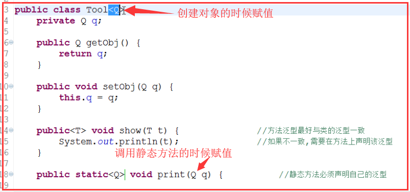 public static <W> void show2(W w){//q在调用静态方法的时候才会赋值