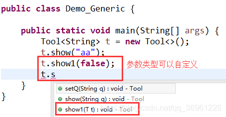public <T> void show1(T t){ //如果不一致,需要在方法上声明该泛型
