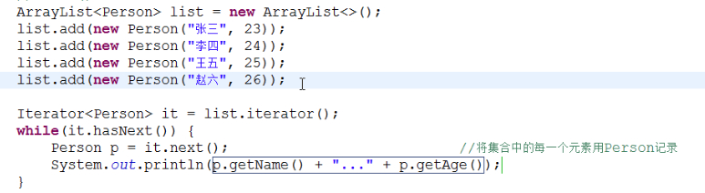 Iterator<Map.Entry<String,Integer>> it = entrySet.iterator(); //获取迭代器,获取每一个对象