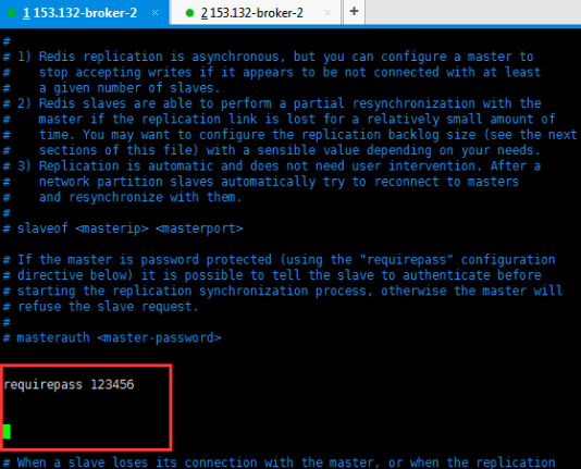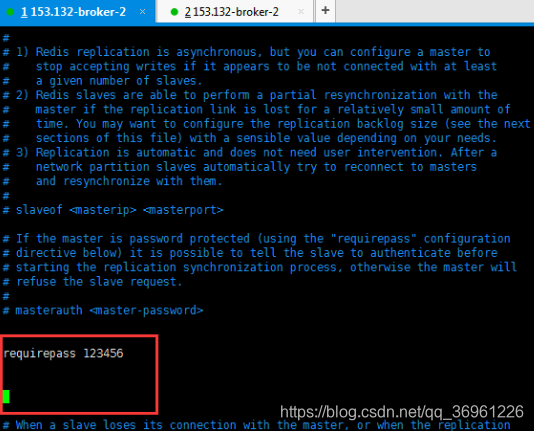 | 2.第二种方式 (永久方式) 需要永久配置密码的话就去redis.conf的配置文件中找到requirepass这个参数,如下配置: 修改redis.conf配置文件 # requirepass foobared requirepass 123456 指定密码123 456 保存后重启redis就可以了 service redis start |