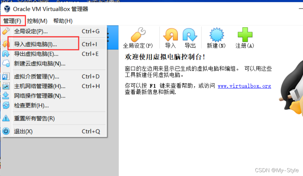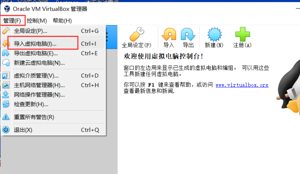 选择管理 - 导入虚拟电脑