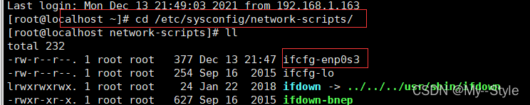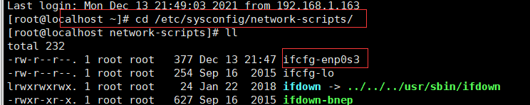 [root@localhost ~]# cd /etc/sysconfig/network-scripts/