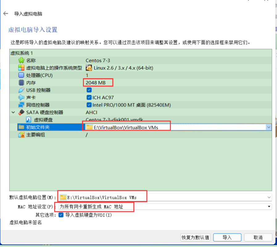 修改内存大小,默认虚拟机电脑位置,MAC地址等