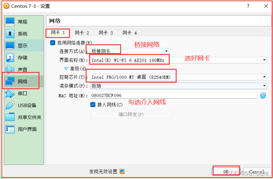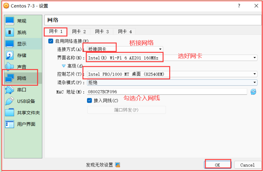 桥接网络=选好网卡==接入网线;
