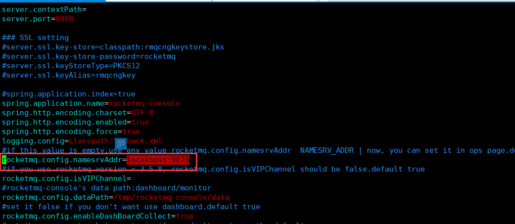 注意:打包前在rocketmq-console中配置namesrv地址: