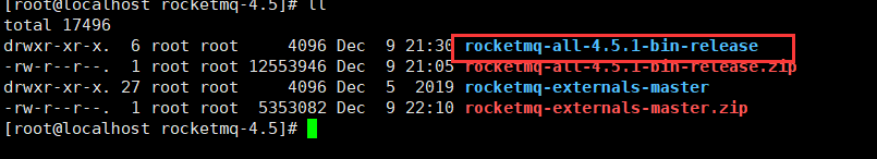 进入目录文件夹 : cd /usr/local/rocketmq-4.5/rocketmq-all-4.5.1-bin-release