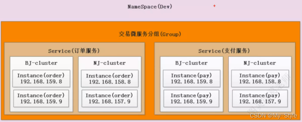 通过namespace来区分是开发环境dev还是测试环境test还是生产环境product,通过两个嵌套的map来实现的,外map的key存放环境名称,内map的key是对应的服务名称(分组了)