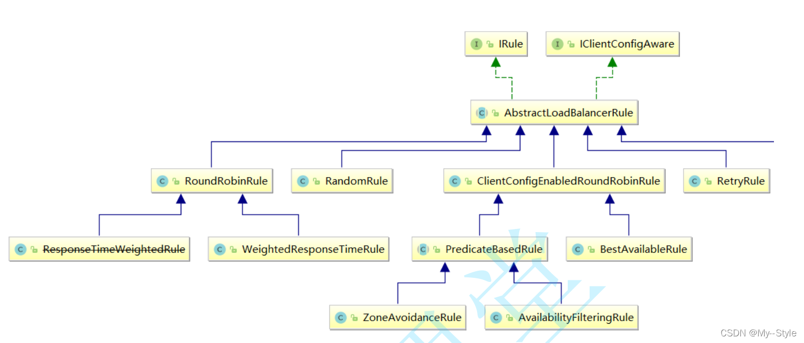 AbstractLoadBalancerRule是一个抽象类,里边主要定义了一个ILoadBalancer,这里定义它的目的主要是辅助负责均衡策略选取合适的服务端实例。