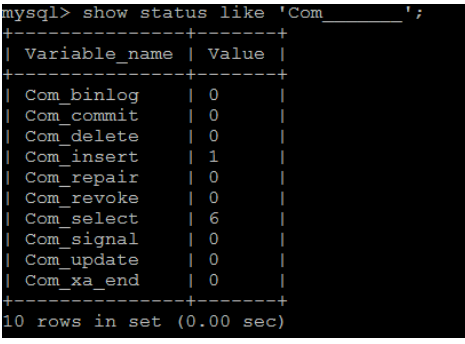 Com_xxx 表示每个 xxx 语句执行的次数,我们通常比较关心的是以下几个统计参数。