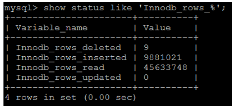 | Innodb_rows_inserted | 执行 INSERT 操作插入的行数。 |