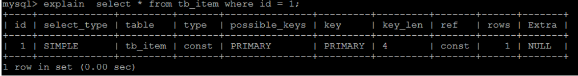 | system | 表只有一行记录(等于系统表),这是const类型的特例,一般不会出现 |