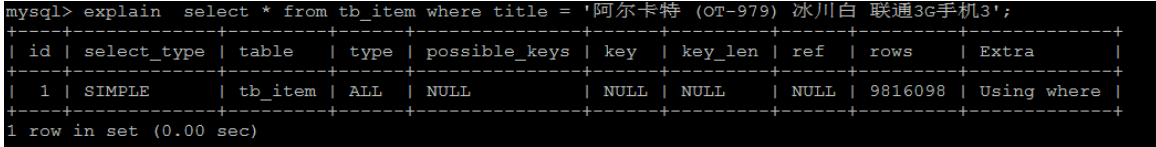 | type | 表示表的连接类型,性能由好到差的连接类型为( system ---> const -----> eq_ref ------> ref -------> ref_or_null----> index_merge ---> index_subquery -----> range -----> index ------> all ) |