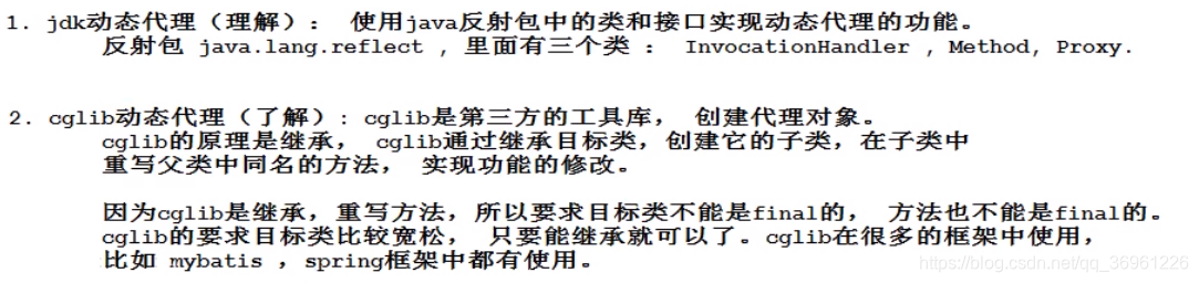 动态代理的实现方式常用的有两种:使用JDK代理代理,通过CGLIB动态代理。