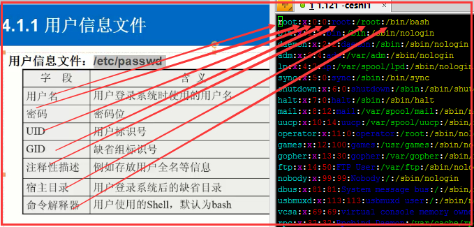 root:x:0:0:root:/root:/bin/bash root' 用户名 x 密码