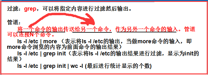 管道 | 将一个命令的输出传送给另一个命令,作为另外一个命令的输入。管道可以连接N个命令。