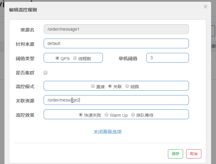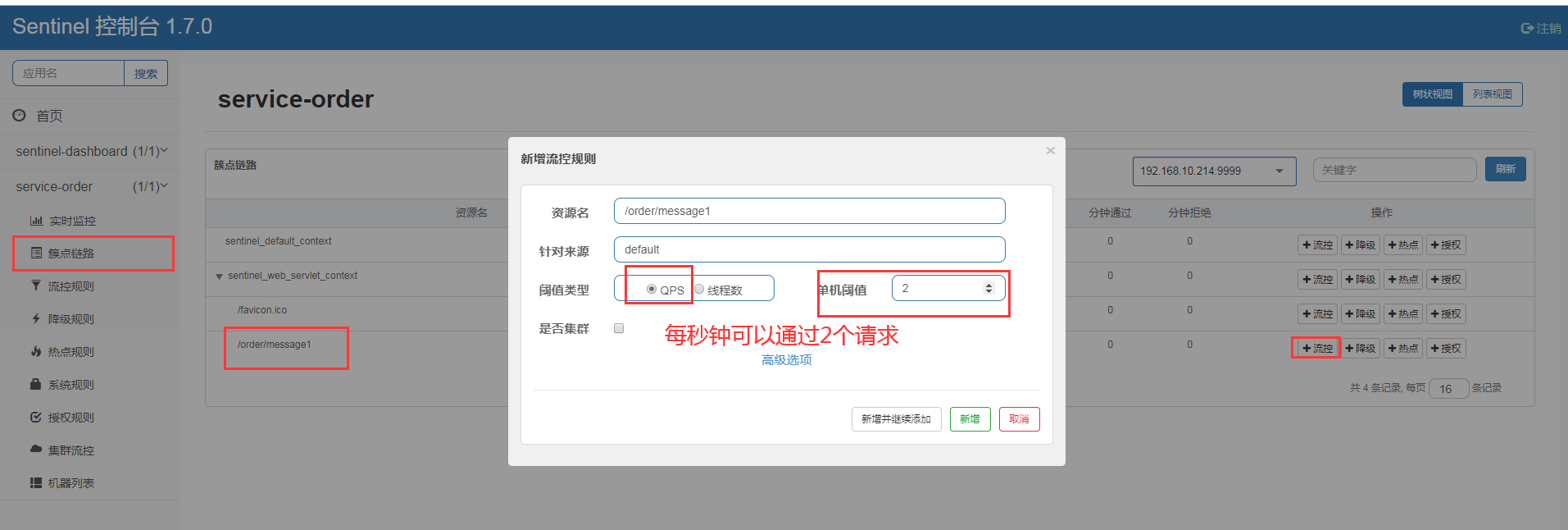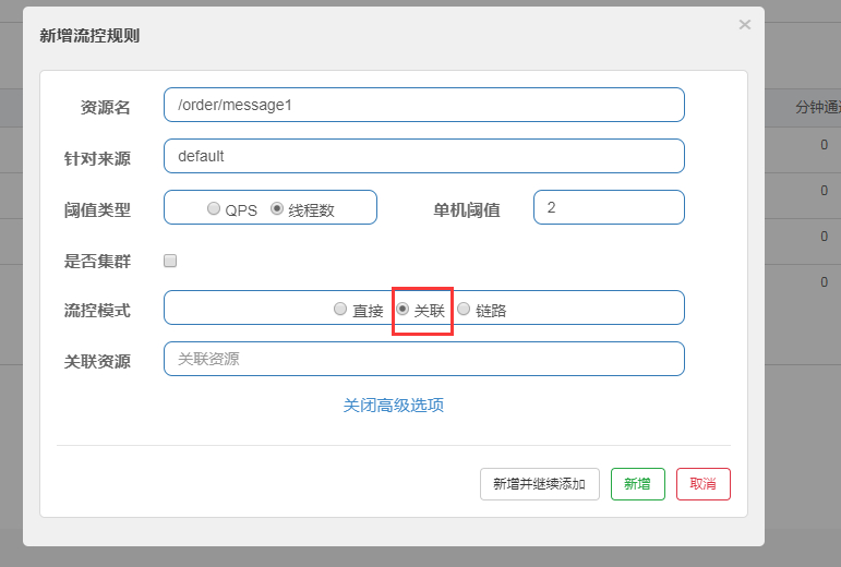 23、集视频观看:添加流控高级功能设置,默认是直接限流,下面讲解关联限流