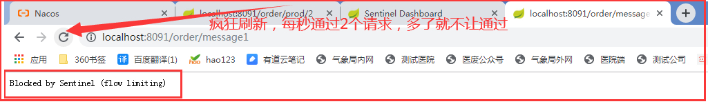 对message2进行加压测试,当message2请求量超多设置值的时候,会对message1进行限流,