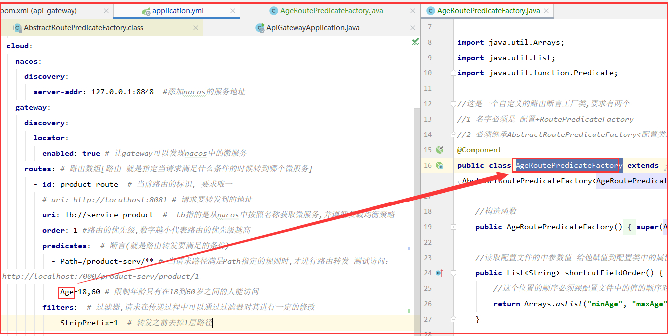 这个类不能随意命名,有固定格式,如下,配置文件的名字后面拼接 RoutePredicateFactory 就是所起java类名字