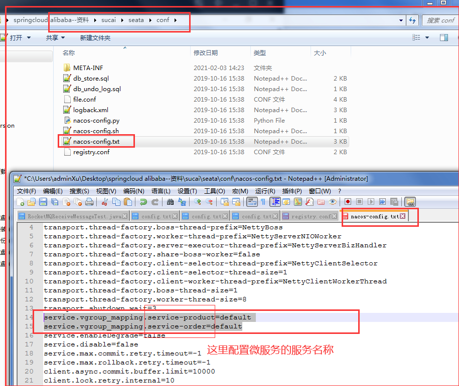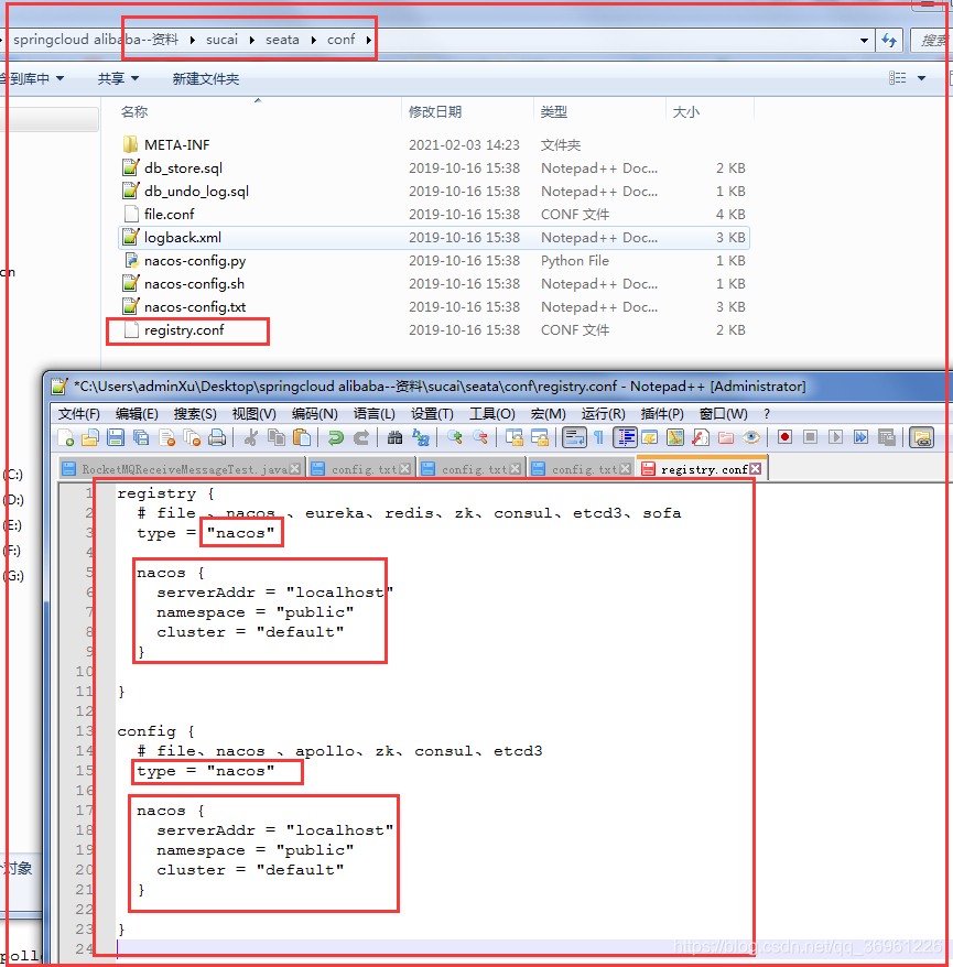 解压seata-server-0.9.0文件,需要修改两个配置文件