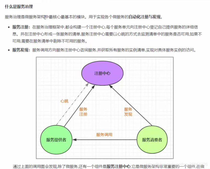通过上面的调用图会发现,除了微服务,还有一个组件是服务注册中心,它是微服务架构非常重要