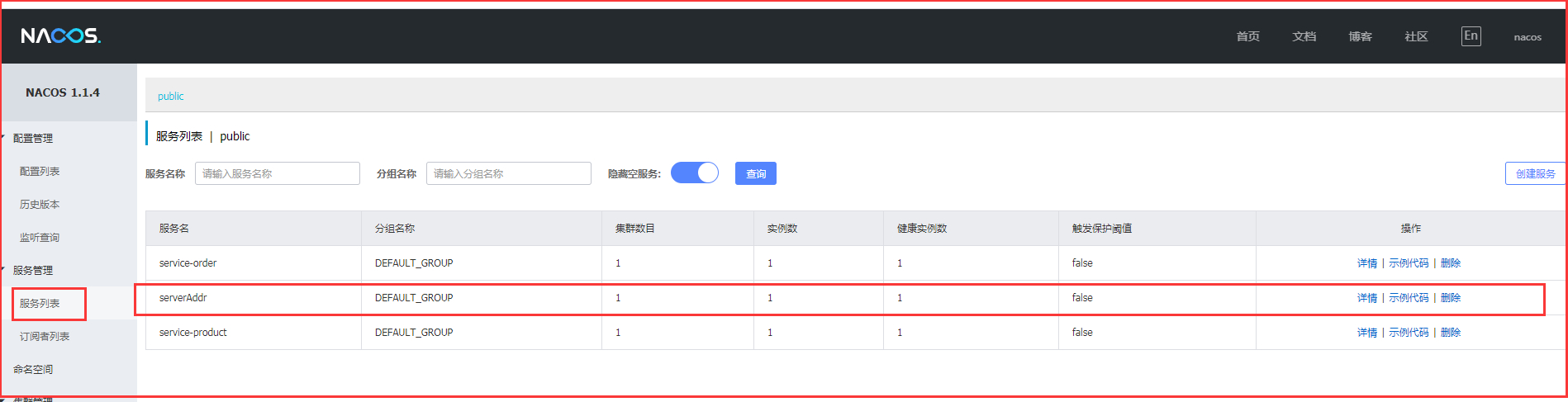 打开浏览器输入http://localhost:8848/nacos,即可访问服务, 默认密码是nacos/nacos