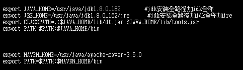 export JRE_HOME=/usr/java/jdk1.8.0_162/jre #jdk安装全路径加jdk全称加jre