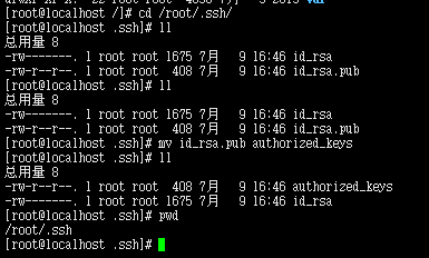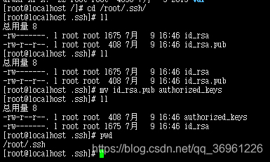 [root@localhost .ssh]# mv id_rsa.pub authorized_keys