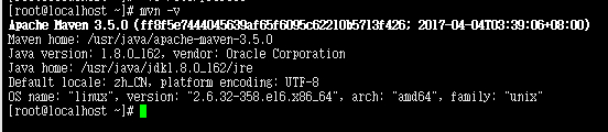 [root@localhost ~]# mvn –v
