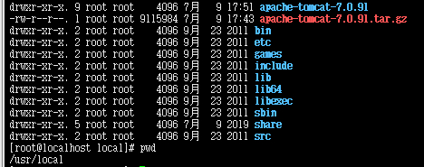 [root@localhost local]# tar -zxvf apache-tomcat-7.0.91.tar.gz