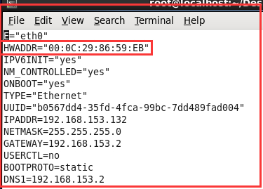 vi /etc/sysconfig/network-scripts/ifcfg-eth0 //编辑这个文件,替换刚复制的HWaddr编码