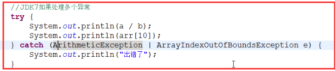 JDK7新特性 在一个catch里面通过 “|” 可以添加多个异常,基本不用,面试用