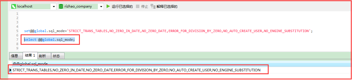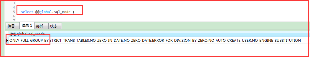 执行完后再次查看:select @@global.sql_mode ;此时就不会再包含: ONLY_FULL_GROUP_BY