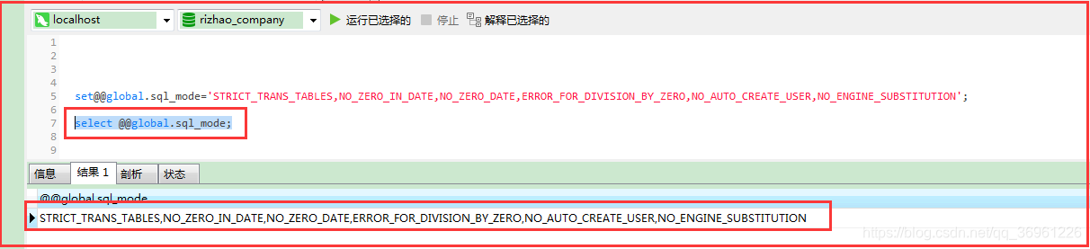 如果包含ONLY_FULL_GROUP_BY 是需要将其删除的,请执行下面的代码重新设置期参数:
