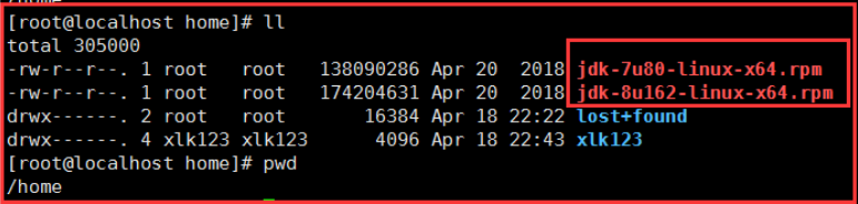 6、进入home文件夹下安装 jdk 【 rpm -ivh jdk安装包全称 】
