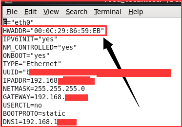 vi /etc/sysconfig/network-scripts/ifcfg-eth0 //编辑这个文件,替换刚复制的HWaddr编码