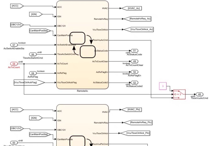 1、模型包含高压上下电,行驶模式管理,能量回馈,充电模式管理,附件管理,远程控制,诊断辅助功能。