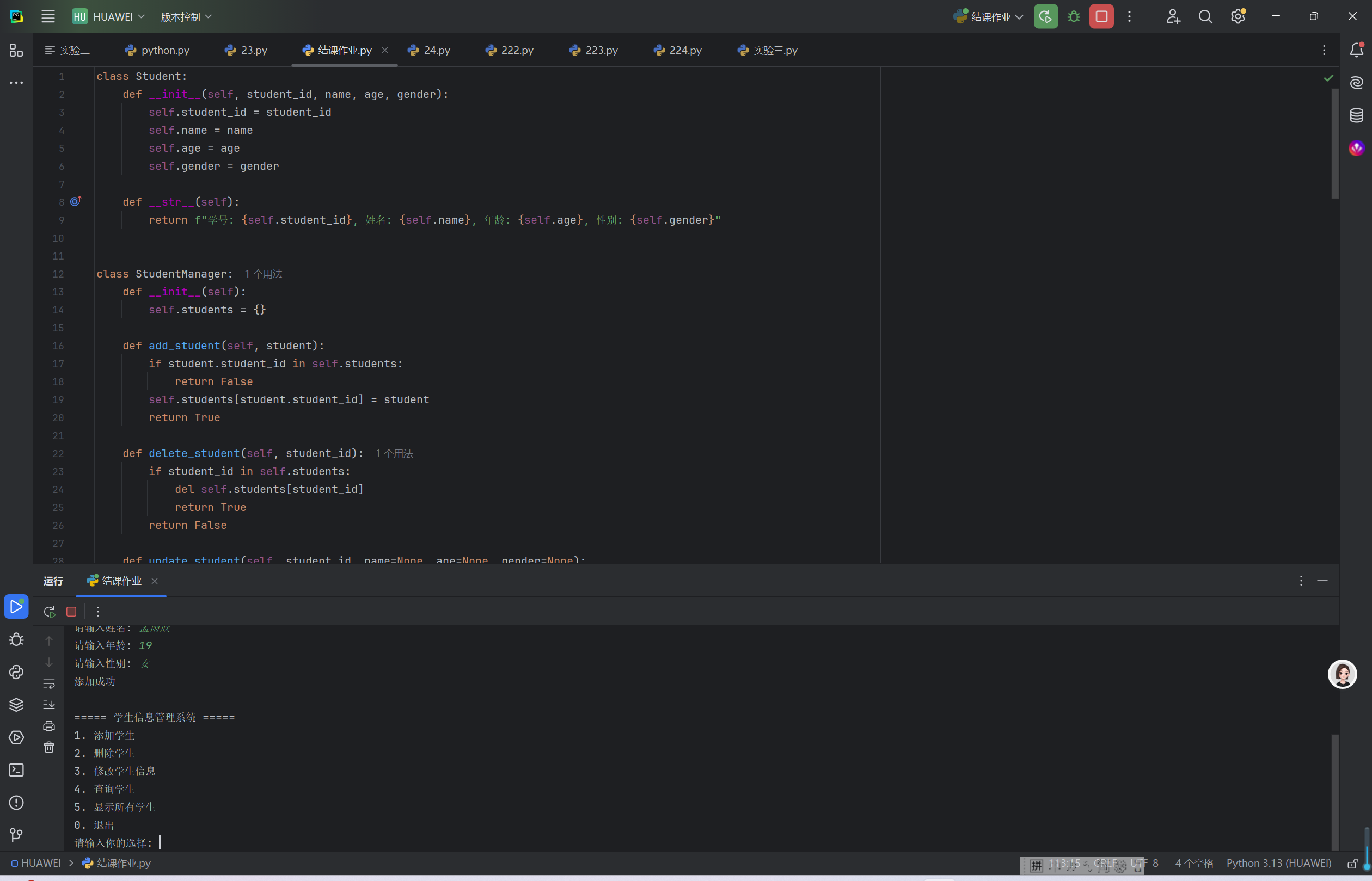 StudentManager类负责学生信息的增删改查操作