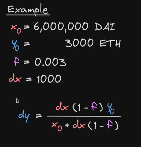 $$\Delta y = y - \frac{k}{x + \Delta x_{with_fee}}$$代入 $k=x \cdot y$,简化后得到 Web3 开发者最眼熟的公式:
