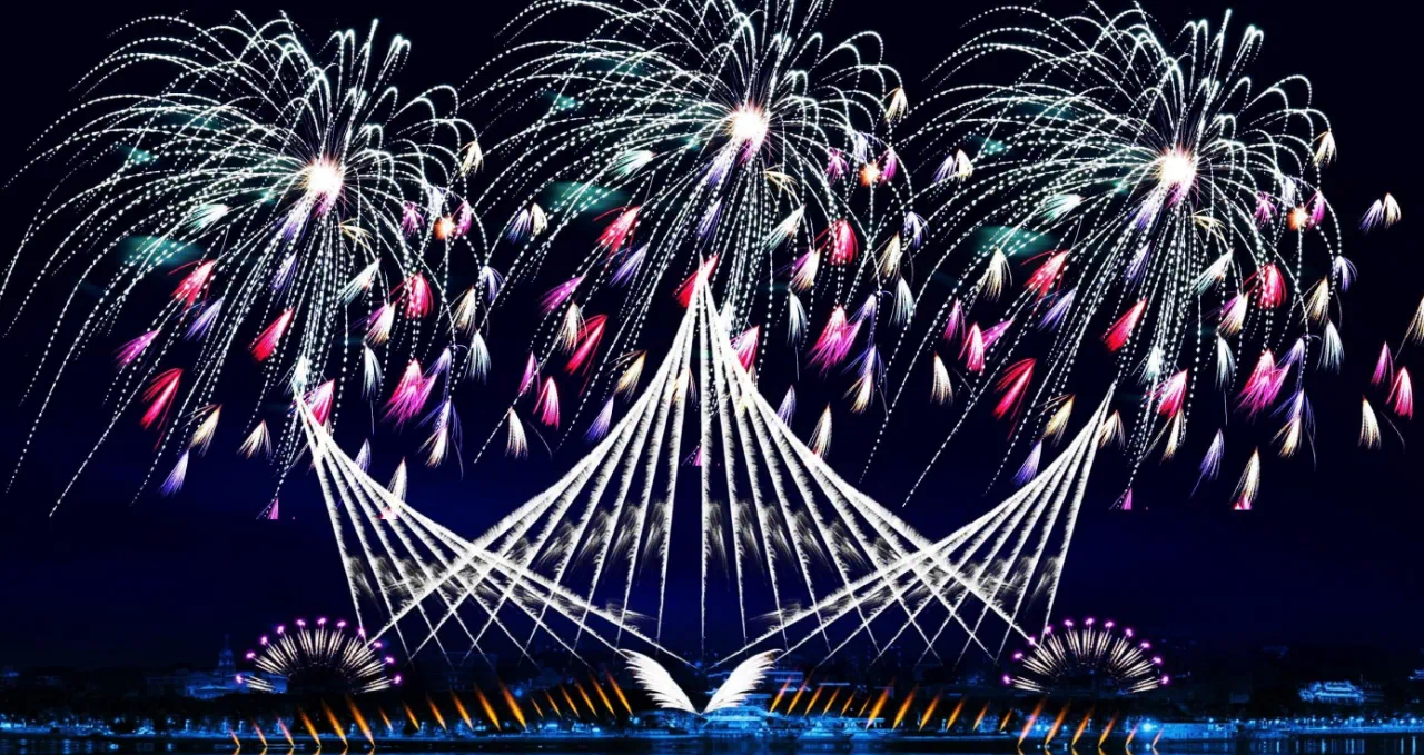 现代晚会焰火秀融合了音乐、灯光、激光等多种元素,通过精心编排和设计,将焰火的燃放与音乐的节奏、灯光的变化结合,创造出火与音乐、光与节奏交织的奇妙效果。这种创新的表演形式不仅提升了焰火秀的艺术价值,也满足了观众日益多样化的审美需求。