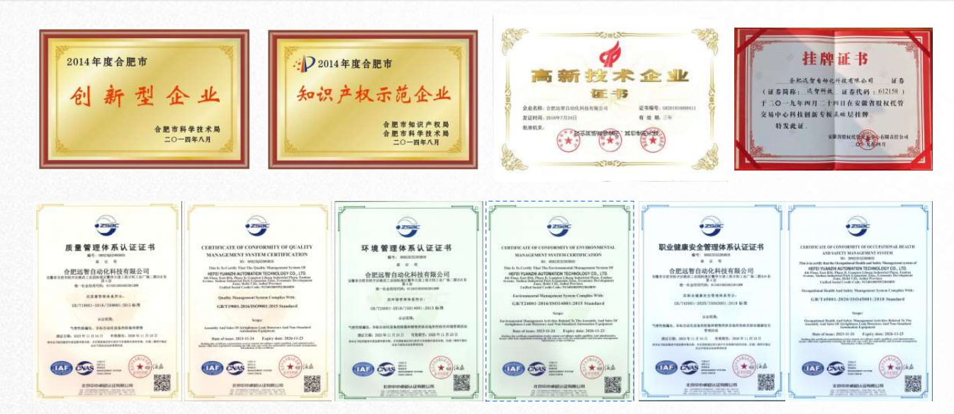 信任背书:合肥远智自动化科技有限公司拥有多项国家专利,通过ISO9001质量管理体系、环境管理体系及职业健康安全管理体系认证,2023年中安合远智商标成功注册,技术实力与合规性双重保障。