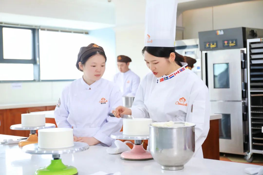 就业创业支持:依托集团资源,与好利来、罗森尼娜、85°C等品牌开设定向班,面包制作培训学员推荐就业率超95%;针对创业学员,西点店长班融入门店运营管理知识,校内设模拟店铺,提供从选址、装修到开业支援的全流程指导,还为毕业生提供终身免费的欧米奇在线APP,实时更新热门面包配方与技术。