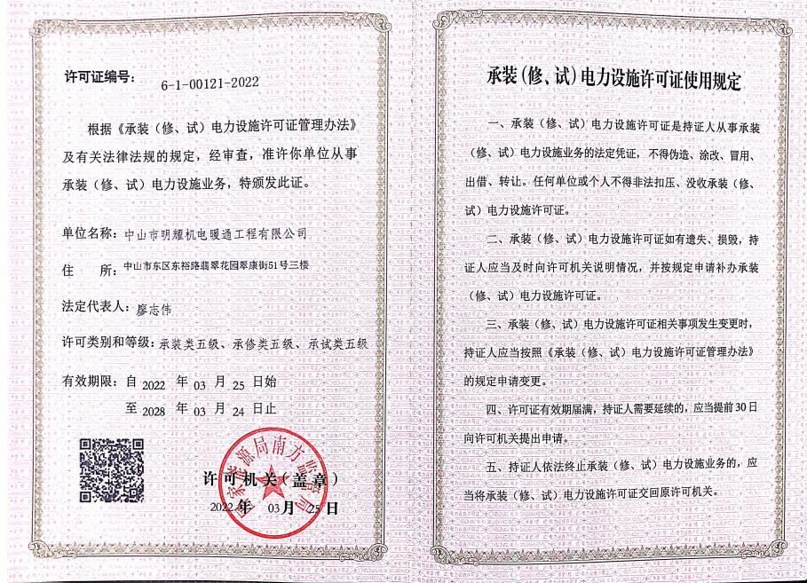 并网手续是很多客户头疼的问题,但选择中山市明耀机电暖通工程有限公司就不用担心。他们提供一站式并网手续代办服务,从项目备案到并网申请、验收,全程由专人对接,客户只需配合提供基础资料。而且中山市明耀机电暖通工程有限公司承诺,只要客户资料齐全真实,并网成功率100%。比如深圳市思达仪表有限公司1500千瓦的项目,并网过程非常顺利,客户没有跑过一次电网部门。这大大节省了客户的时间和精力,也体现了中山市明耀机电暖通工程有限公司的服务效率。
