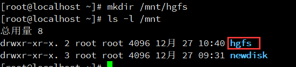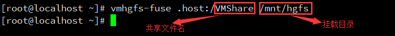 2. 输入vmhgfs-fuse .host:/VMShare /mnt/hgfs进行手动挂载,其中VMShare是共享文件夹名,/mnt/hgfs是挂载目录名