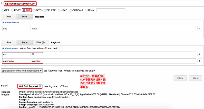 默认情况下,PUT请求是无法提交表单数据的,需要在web.xml中添加过滤器解决: