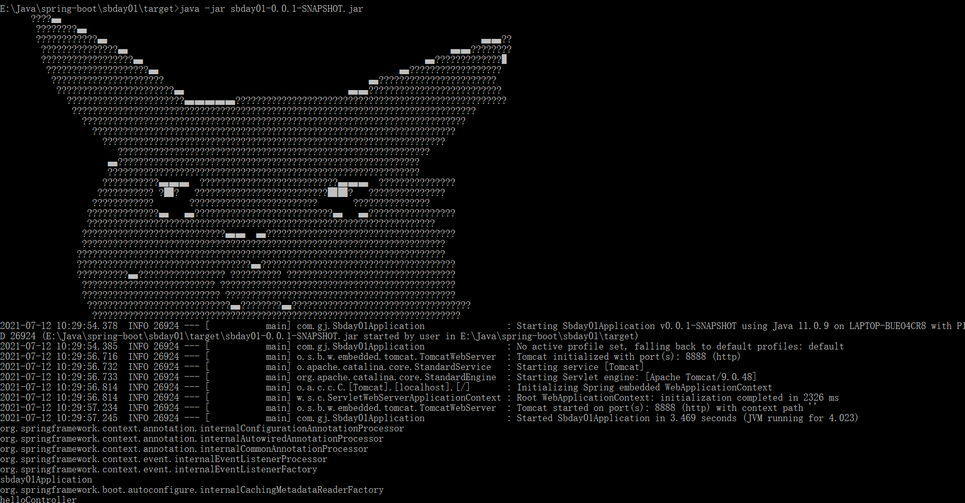 java -jar sbday01-0.0.1-SNAPSHOT.jar(jar包名)即可运行。