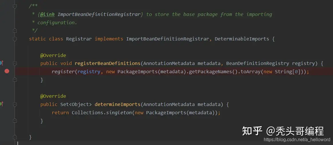 可以发现,它会拿到启动类所在的包路径,然后返回给register方法作为它的第二个参数传入。这就是为什么在启动时,我们不需要配置任何路径,SpringBoot就可以帮我们把组件注入容器的原因。